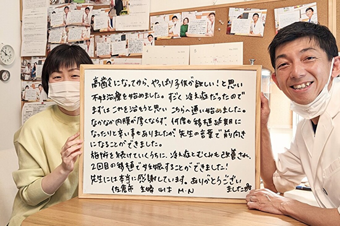 実は、院長自身が不妊治療経験者です。妻が42歳の時に妊娠、43才寸前で無事出産。実際に妻に施術を行い、成功しているから解るその知識と経験を全てお伝えして、最短で妊娠へと導きます。35歳以上でもまだまだ諦めるには早いです。絶対に諦めないでください!