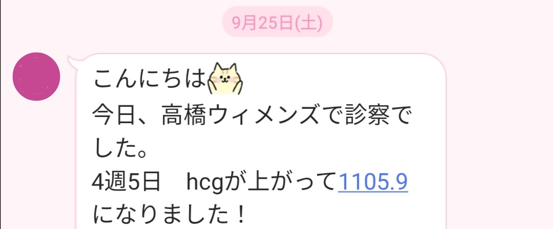陽性判定HCG1105.9へ上昇!(クリニック診察後、9月28日に鍼灸施術)