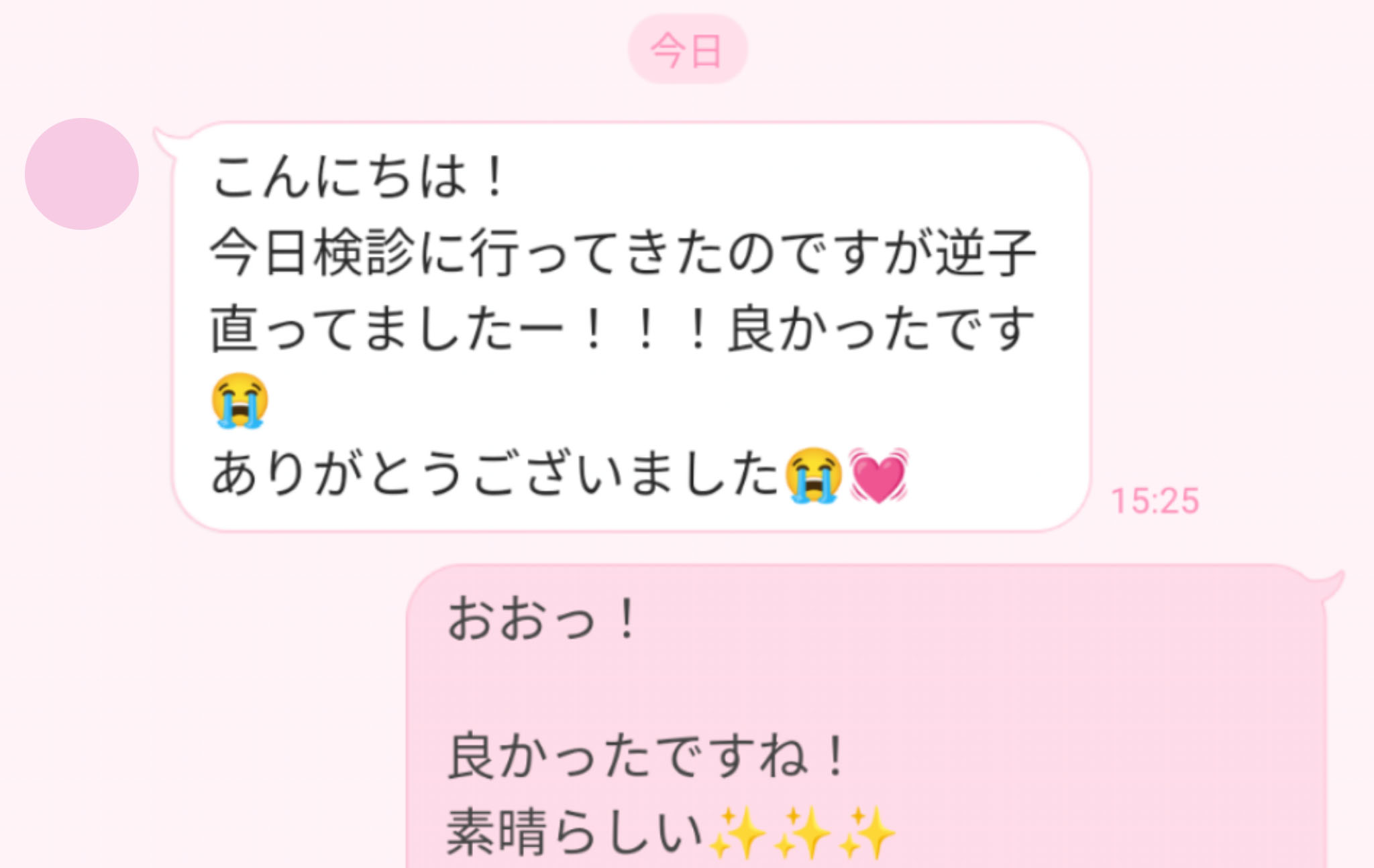 先生のおかげで、前向きにここまで来られました。ありがとうございます(キラキラ)