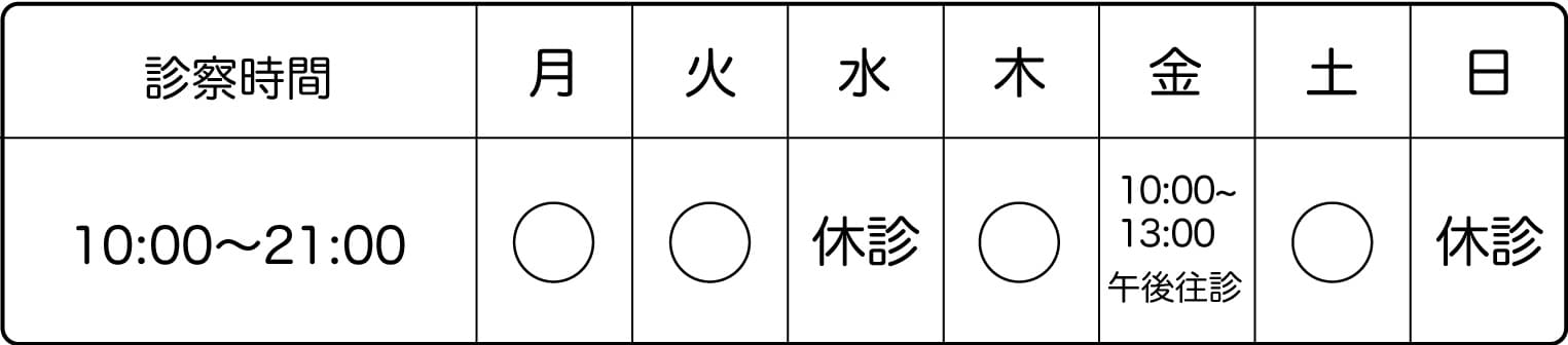 - ※受付は診察終了時間の30分前まで (完全予約制)