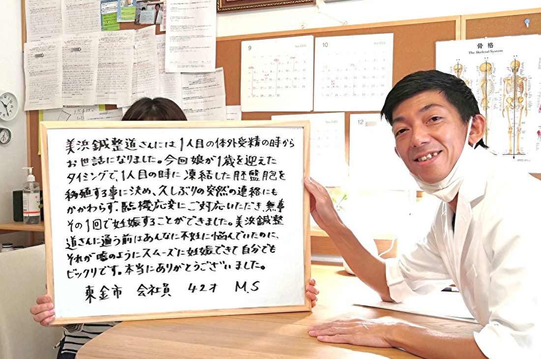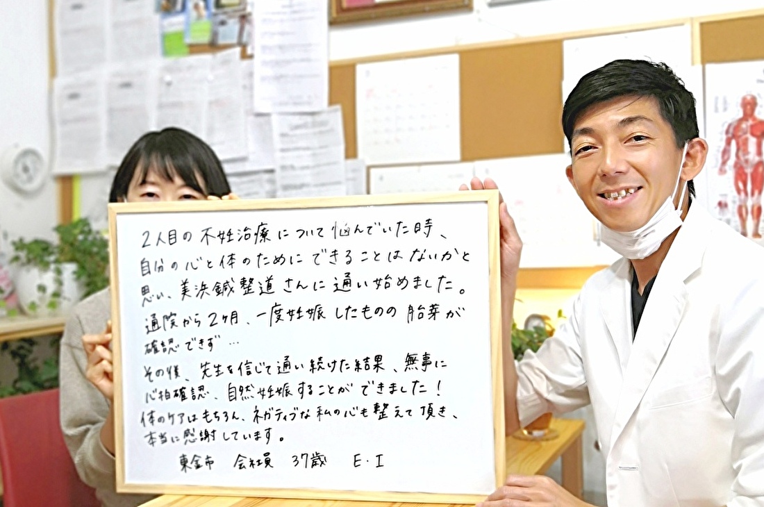 お客様の声voice もっと早く通えば良かったです。千葉県千葉市 会社員 32歳 A.I様 MORE ご出産おめでとうございます!!千葉県千葉市 会社員 31歳 N.O様 MORE ご出産おめでとうございます!千葉県旭市 主婦 28歳 M.S様 MORE 2人目も1回で妊娠できました!☆心拍確認後の妊娠安定鍼でご来院☆(千葉メディカル体外受精併用)千葉県東金市 会社員 42歳 M.S様 MORE ご出産おめでとうございます!千葉市稲毛区 主婦 42歳 S.S様 MORE 通院2ヶ月、妊娠したものの…千葉県東金市 会社員 37歳 E.I様 MORE 自分を信じる・自分の未来は自分でつくる千葉県千葉市 教員 42歳 M.K様 MORE 生理痛、偏頭痛も改善しました!千葉県千葉市 会社員 32歳 Y.W様 MORE 12345